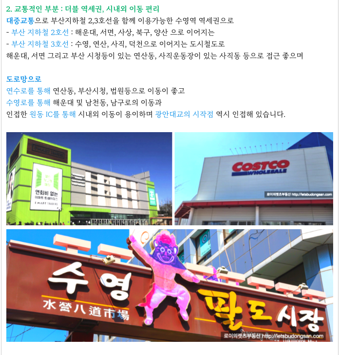 가장 큰 장점은 : 시세 좋고 실거주 좋은 수영구 입지는 기본으로