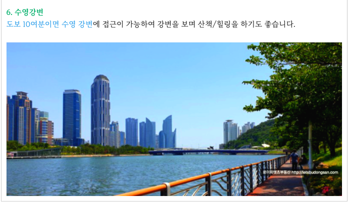 수영과 해운대를 나누는 수영강변 역시 도보 20여분의 거리에 있어