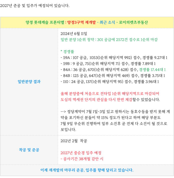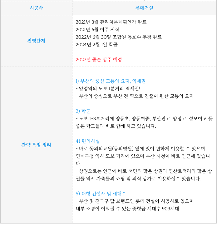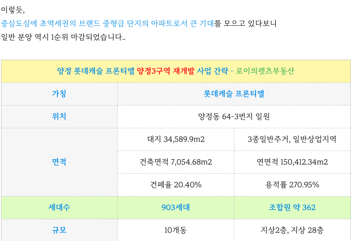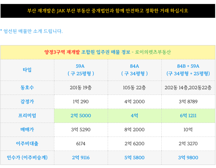 [롯데캐슬 프론티엘 ] 양정3구역 재개발 : 59타입 급매 및 84 타입 조합원 입주권, 일분가 가격 비
