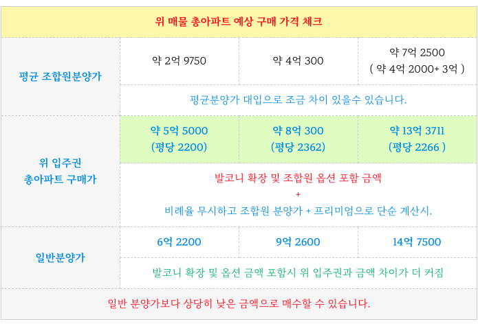 조합원 입주권 매물은 프리미엄을 더해도 일반 분양가보다도 상당히 저렴하여 더욱 매력적 이며