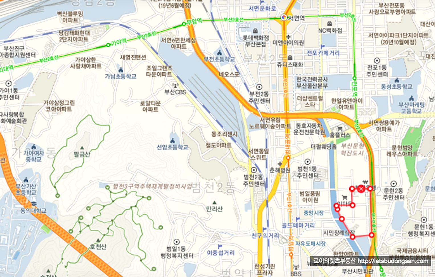 지하철 2호선 범일역 또한 도보 10여분 거리의 역세권 으로