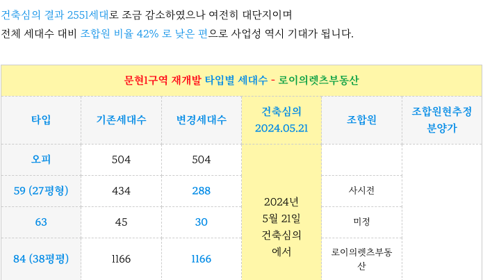 문현1구역 재개발 현재 계획된 타입별 세대수 정리 소개 드립니다.