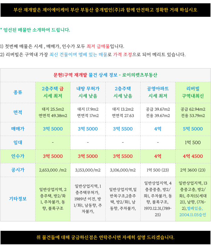 부산 전역 재개발에 대해 궁금하신 점은 방문 또는 연락주시면 자세히 설명 드리겠습니다.