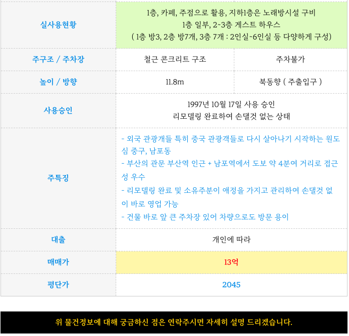 살아나는 원도심 남포동, 광복동역세권 3층 게스트 하우스 건물 빌딩 매물
