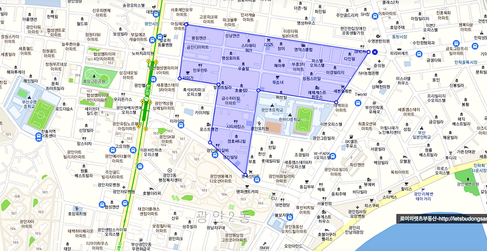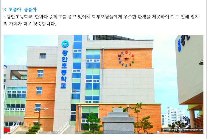- 광안역 역세권, 초품아, 중품아, 평지.