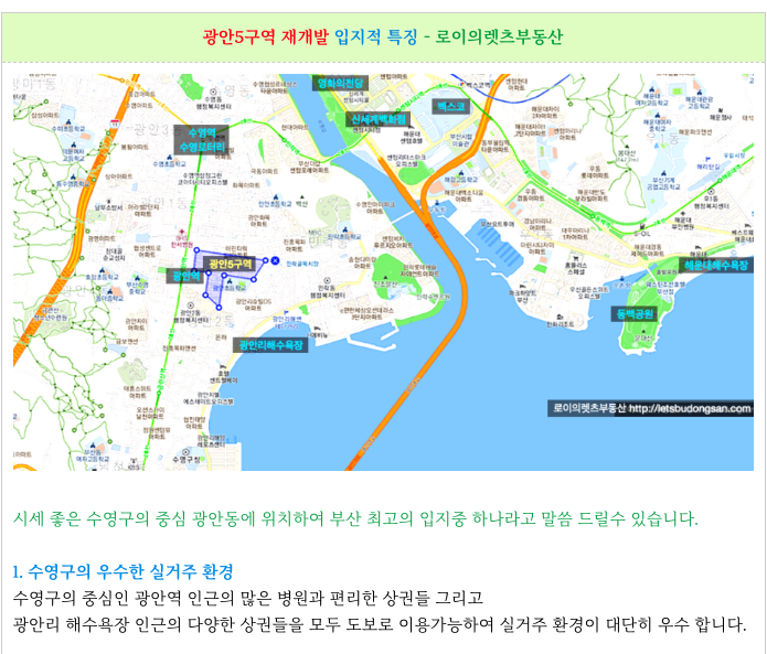 입지좋은 광안5구역 재개발 입지적 특징을 간략하게 보기 편하게 다시 소개해 드리겠습니다.