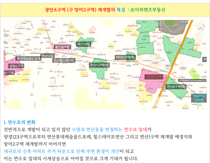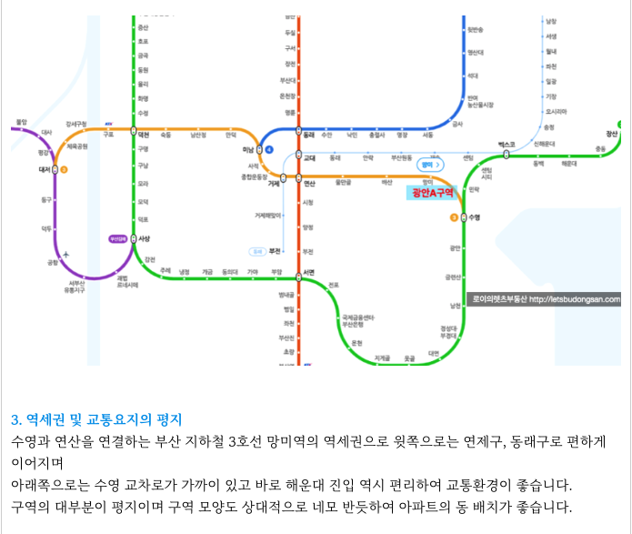 역세권 광안A구역 재개발 주요 입지적 특징, 장점을 정리하였습니다.