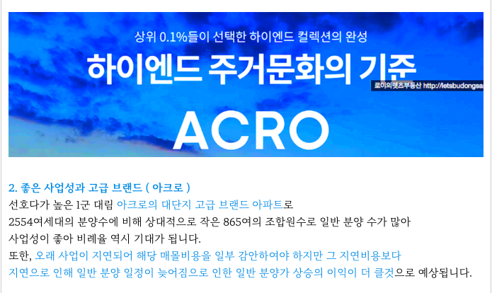 하이엔드 브랜드 : 아크로 광안, 특화 설계.