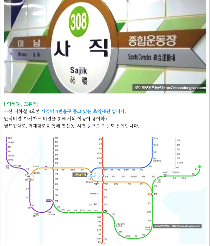 부산 지하철 3호선 사직역을 품고 있는 초역세권 단지 이며