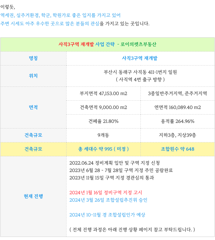 (입지,입지) 사직3구역 재개발 : 급매 매물 1.3인수 & 진행 일정, 소식