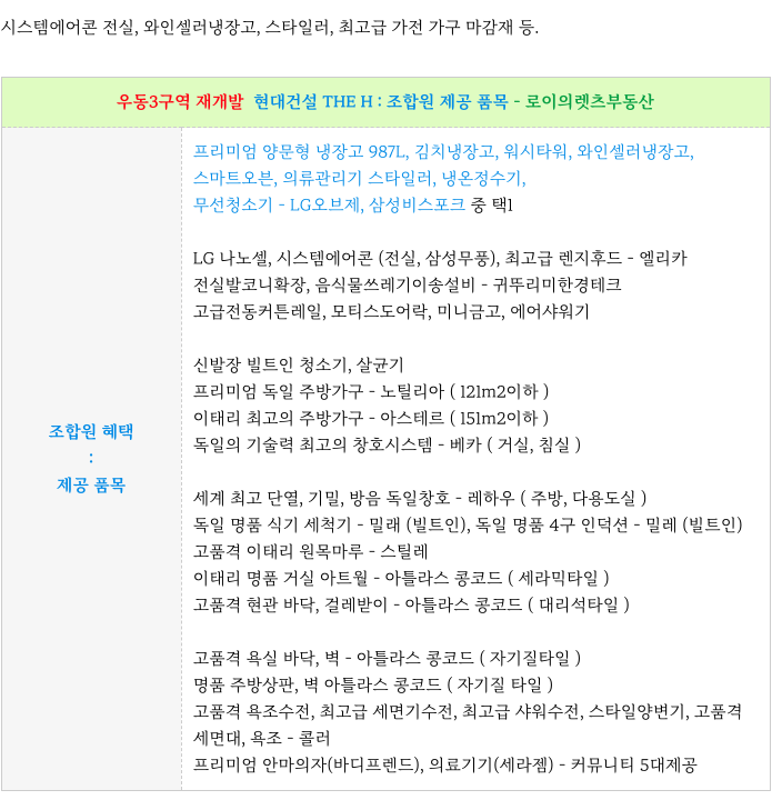 해운대 우동3구역 현대건설 THE H 특화 제안 부분 정리하였습니다.