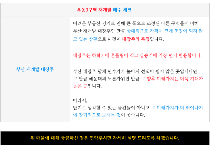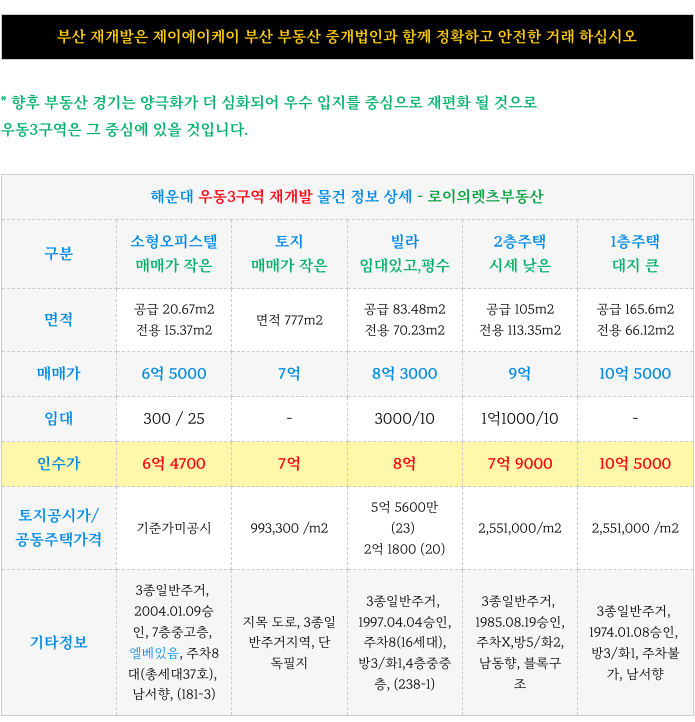 부산 전역 재개발에 대해 궁금하신 사항은 방문 또는 연락주시면 자세히 설명드리겠습니다.