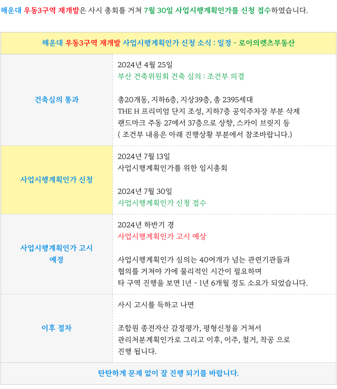 해운대 우동3구역 재개발 사업시행계획인가 신청 소식과 매물 정보 정리하였습니다.
