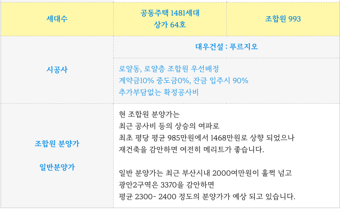 조합원 매물은 일반 분양가보다 1.5억이상의 차이가 있어 가격적 메리트가 아주 좋습니다.