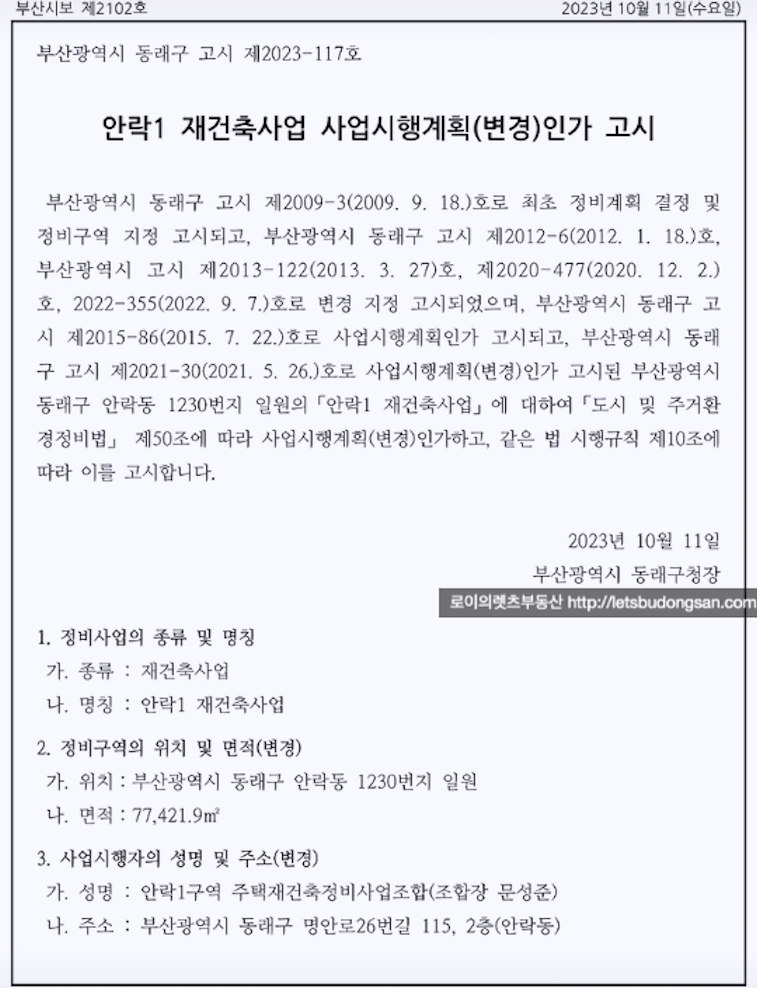 (실거주 좋은 동래구) 안락1구역 재건축 최근 동호수 추첨 소식과 매물 정보