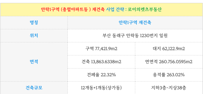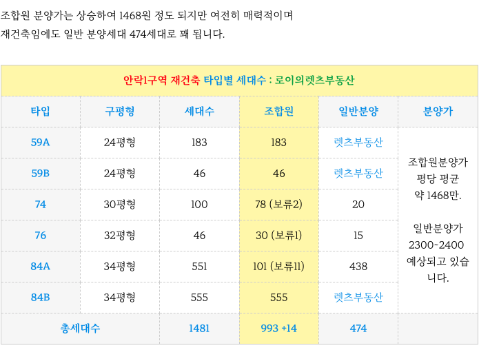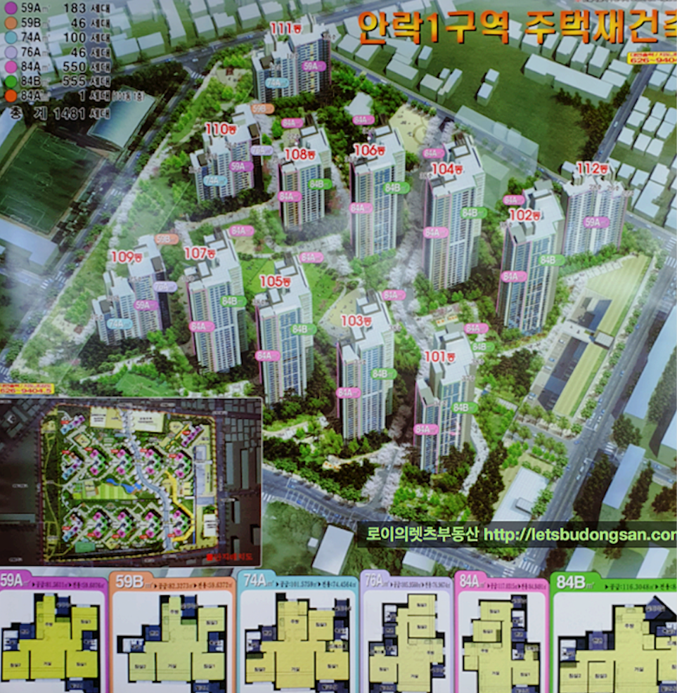 동래구 안락1구역 재건축 : 조합원 동호수 추첨 완료 & 타입별 매물