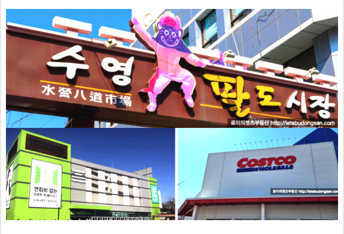 수영로터리 주변의 밀집된 병원, 상가들과 재래시장 팔도 시장 역시 이용이 좋고