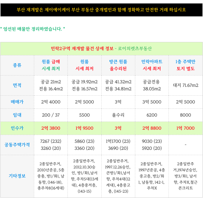 부산 전역 재개발에 대해 궁금하신 사항은 방문 또는 연락주시면 자세히 설명드리겠습니다.