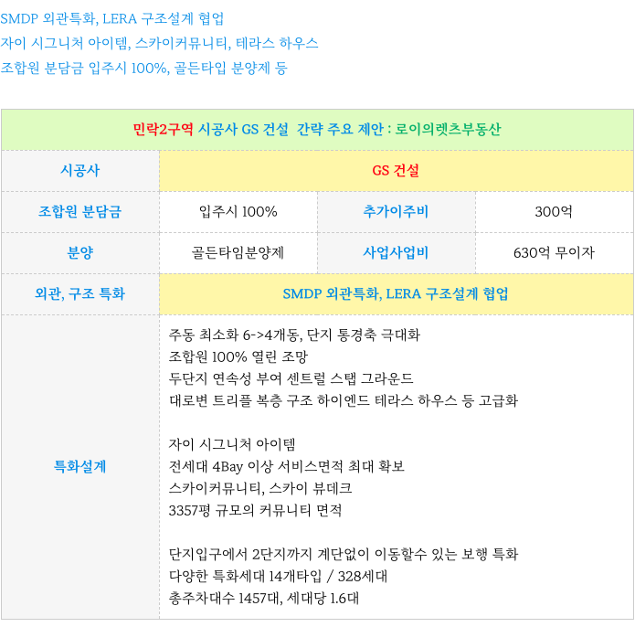 시공사는 LERA 구조설계 협업과 SMDP 외관특화, 등으로 기대감을 높이고 있으며