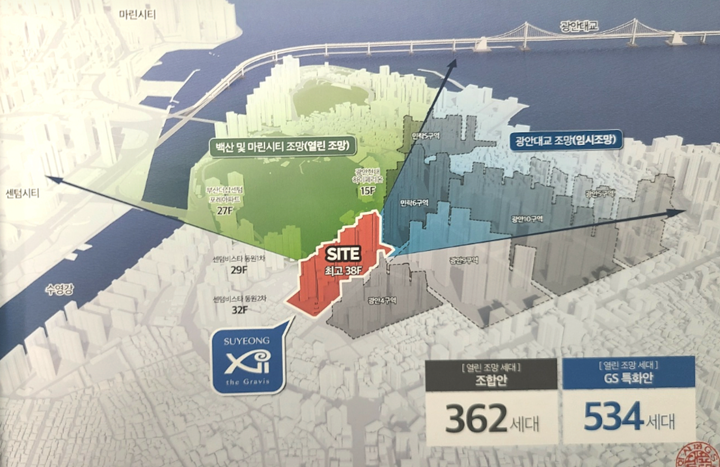 수영구 민락2구역 향후 단지가 들어섰을때의 조망 부분 간략 설명 드립니다.