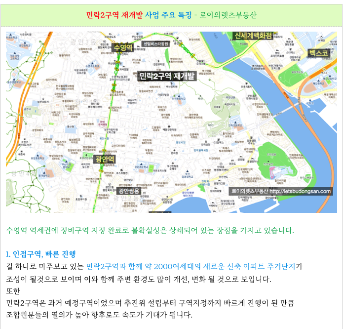 수영역 민락2구역 재개발 진행 일정 그리고 소액 매물