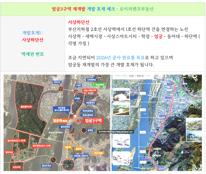 사상하단선 엄궁역 직통 연결로 초역세권으로 변모되어 단점이 장점으로 변화되며