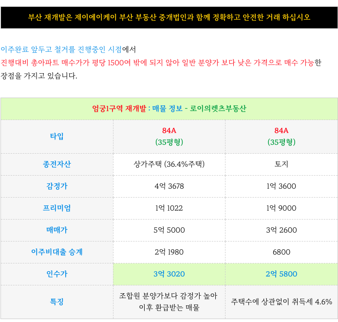 [ 부산, 양산 / 상가 / 사업부지(토지) / 건물 / 주택 / 재개발 전문으로 신속하고 정직하게 거래 합니다. ]