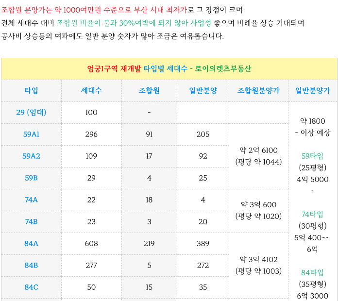 엄궁1구역 재개발 타입별 세대수와 조합원 분양가 등 소개해 드리겠습니다.