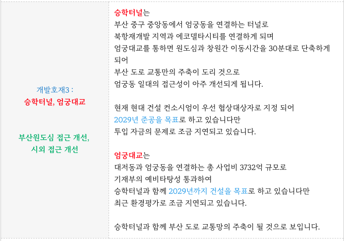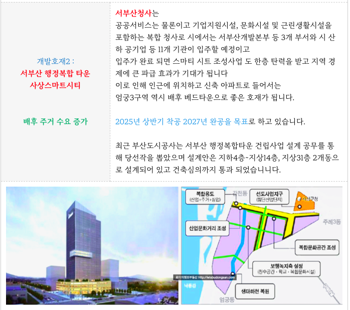 주변, 서부산청사, 승학터널, 엄궁대교 등 개발호재를 가지고 있습니다.