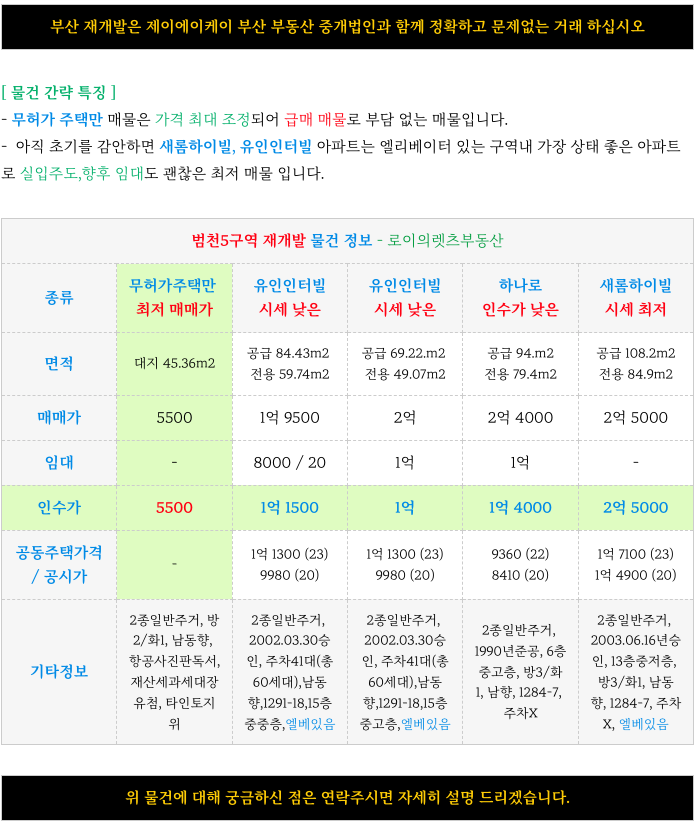 (조합설립중) 범천5구역 재개발 : 5500 최저 소액 급매 매물