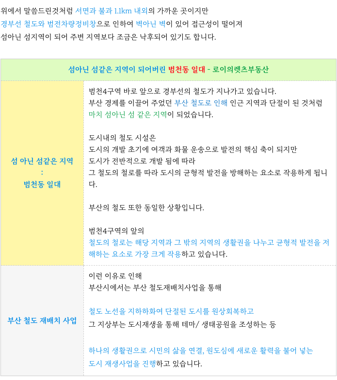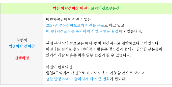 [ 개발 호재 : 범천차량정비창 이전, 경부선 철도 지하화 ]