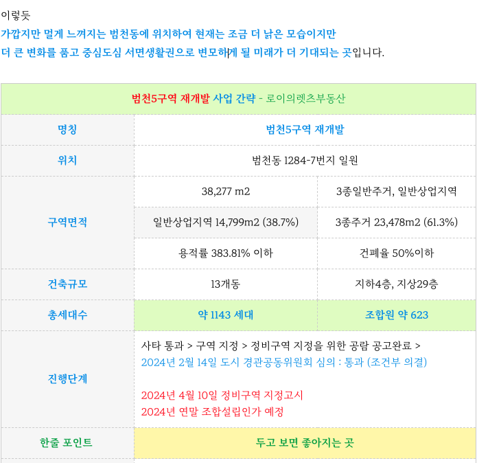 범천5구역 현재까지의 주요 사항 그리고 이후 일정 정리등 추가 정보는 아래 페이지를 참고 부탁드립니다.