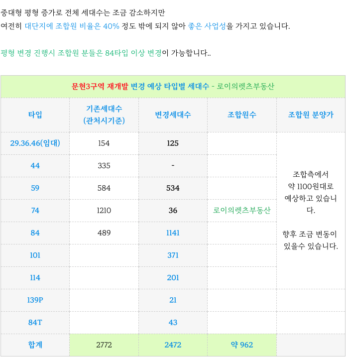 철거중인 문현3구역 타입별 세대수 부분 정리하였습니다.