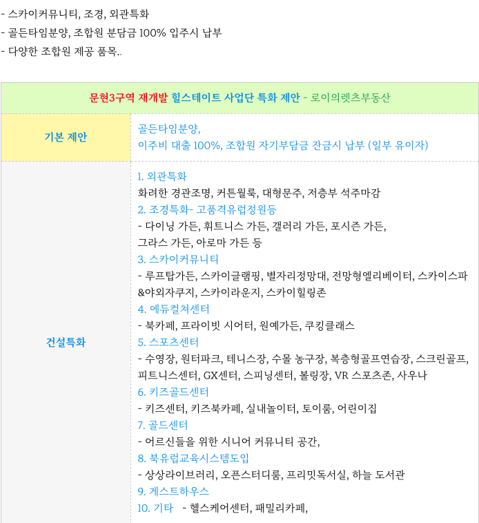 문현3구역 재개발 시공사 추가 특화 제안 부분 정리 드립니다.