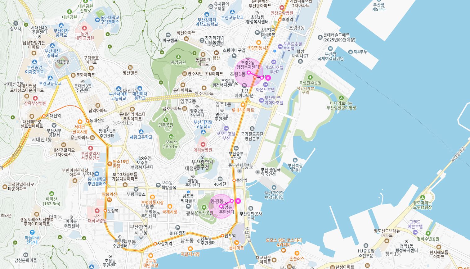 - 부산역 인근, 원도심 중구 일대 ( 남포동, 동광동, 광복동 등 )