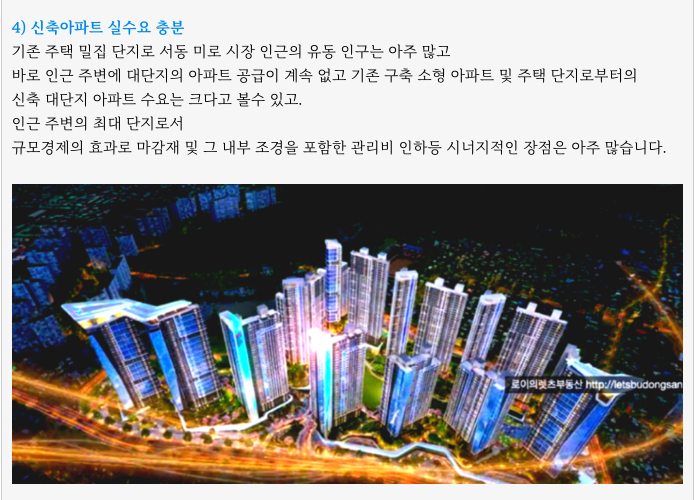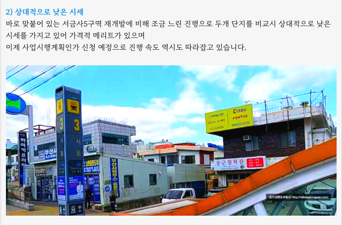 비교가 아니라 함께 하여 서동이 큰 신축 아파트 타운으로 변경이 되기에 거주 환경 변화가 크게 기대 되고최근 속도를 내고 있는 재개발 구역 입니다.