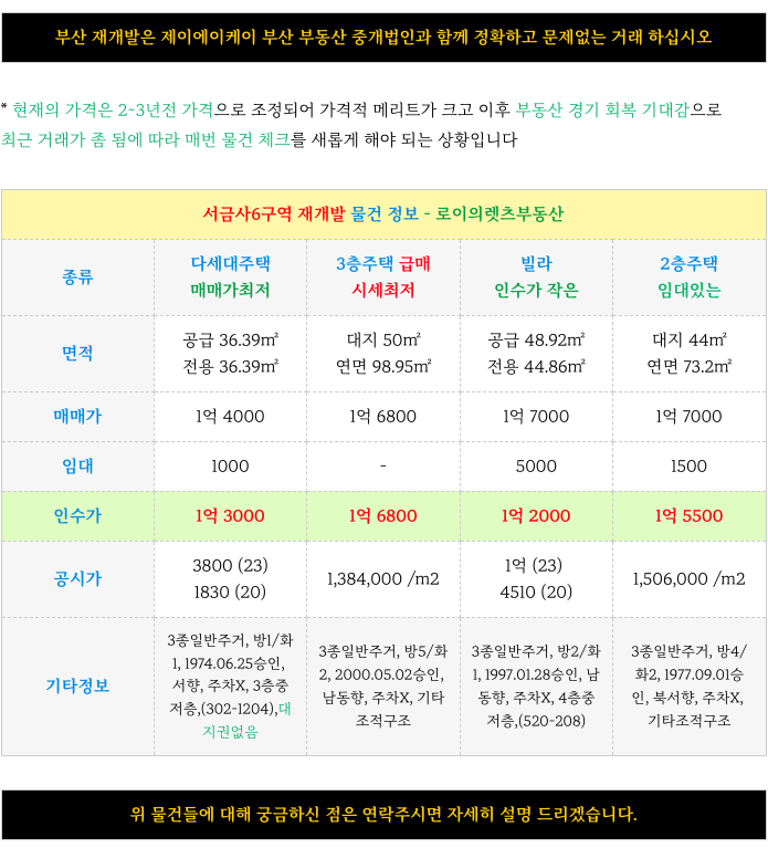 서금사6구역 재개발 현 최저 매물들 정리해 드리겠습니다.