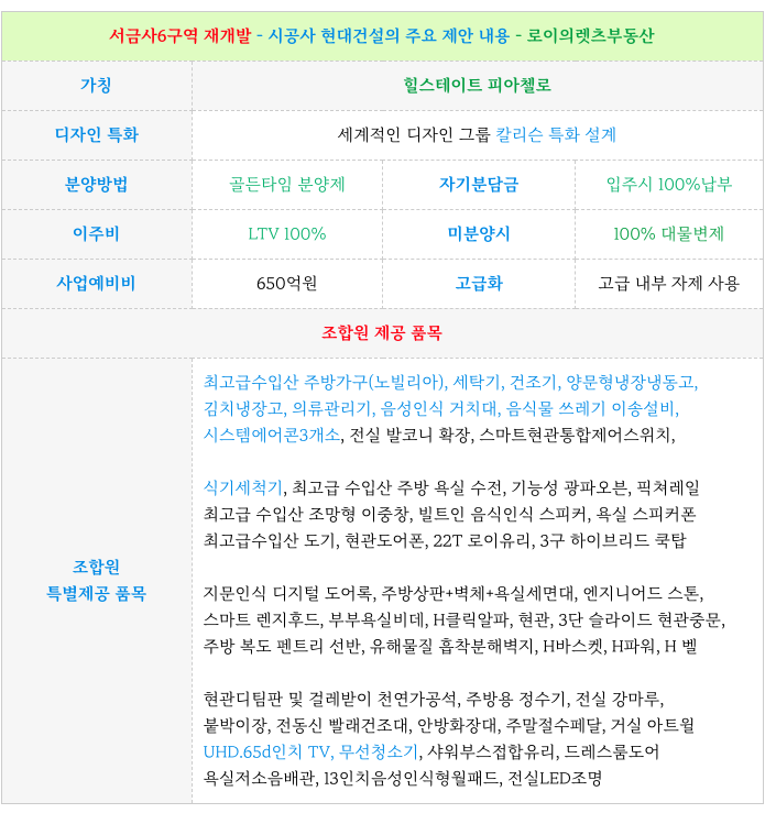 서금사6구역 재개발 새롭게 선정된 현대건설 제안안 부분 정리하였습니다.