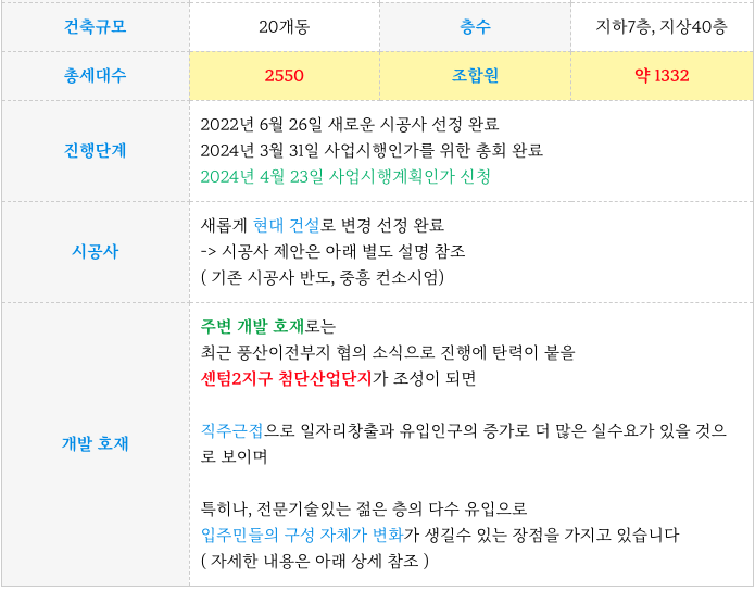 기 시공사 해지 후 현대건설로 재선정하였으며