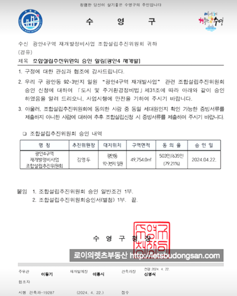 안녕하세요 JAK 제이에이케이 부산 ( 로이의렛츠부동산 ) 입니다. 오늘은 조합창립총회 마친 광안4구역 ...