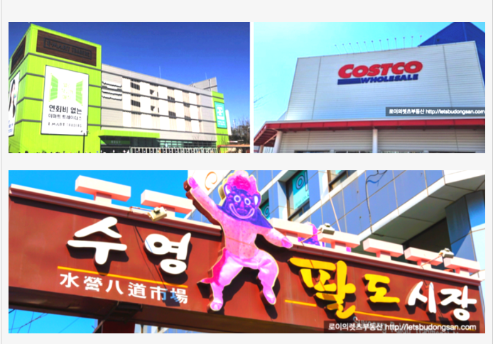 기본적으로 수영로터리 인근으로 병원과 상가들이 밀집해 있고 재래시장 팔도시장이 있으며