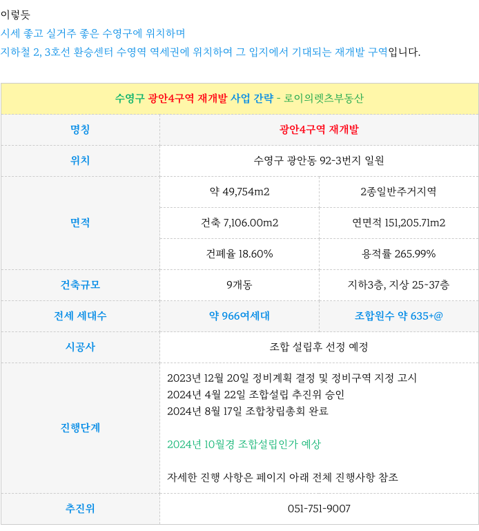 광안4구역 초기지만 주요 진행 사항 및 이후 절차 정리등 추가 정보는 아래 페이지를 참고 부탁드립니다.