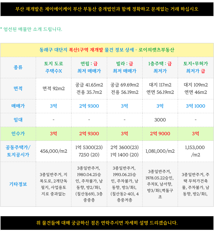 부산 전역 재개발에 대해 궁금하신 사항은 방문 또는 연락주시면 자세히 설명 드리겠습니다.