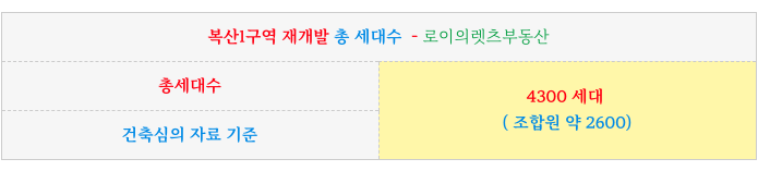복산1구역 현 계획 타입별 세대수 정리하였습니다.