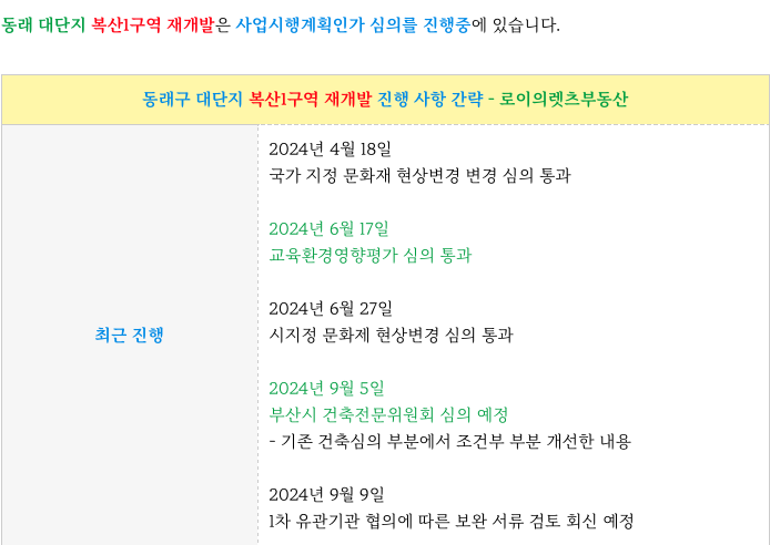 동래구 복산1구역 은 사업시행계획인가 심의를 진행중에 있습니다.