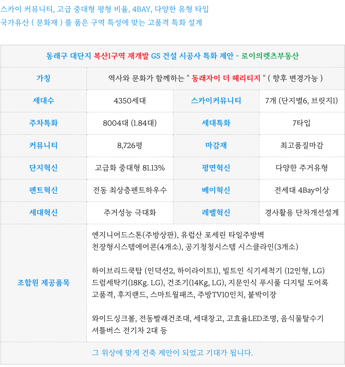 복산1구역 재개발 시공사 GS 건설 특화 제안 소개해 드립니다.