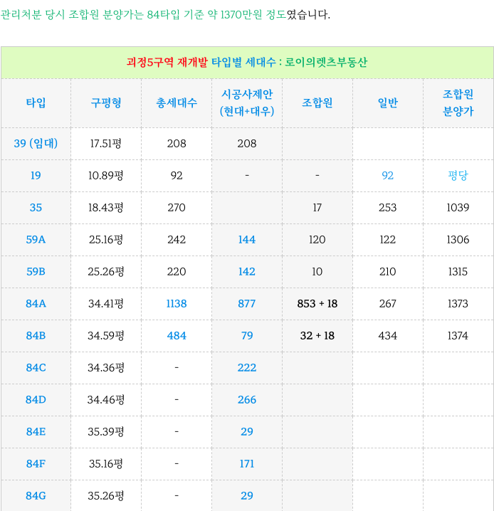 괴정5구역 재개발 타입별 세대수, 예상 분양가 소개해 드리겠습니다.