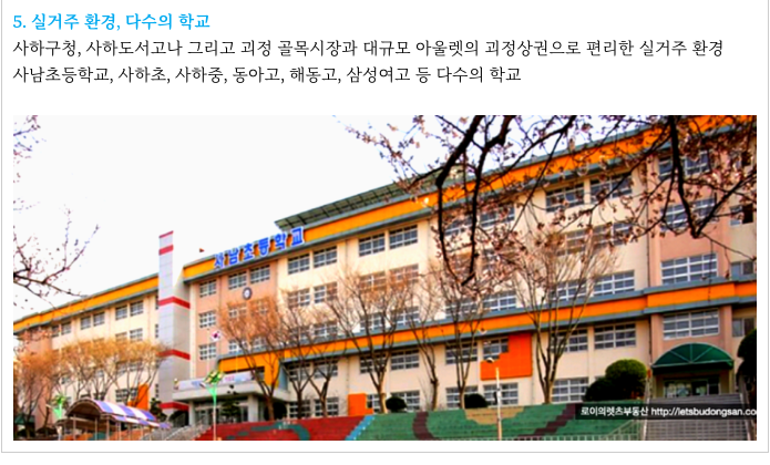 주변으로도 사하중, 당리중, 해동고, 동아고 등 많은 학교들이 도보 거리에 있습니다.