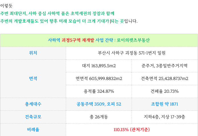 안녕하세요 로이의렛츠부동산 ( JAK 제이에이케이 부산 ) 입니다. 오늘은 시공사 선정 총회 앞둔 사하 ...