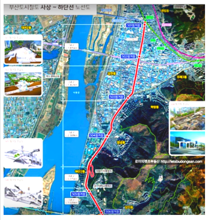 - 하단녹산선은 하단에서 명지와 녹산까지 그리고 향후 가덕도 신공항까지 연결되수 있어 중요한 도시 철도로 현재 예비타당성이 통과된 상태 이며